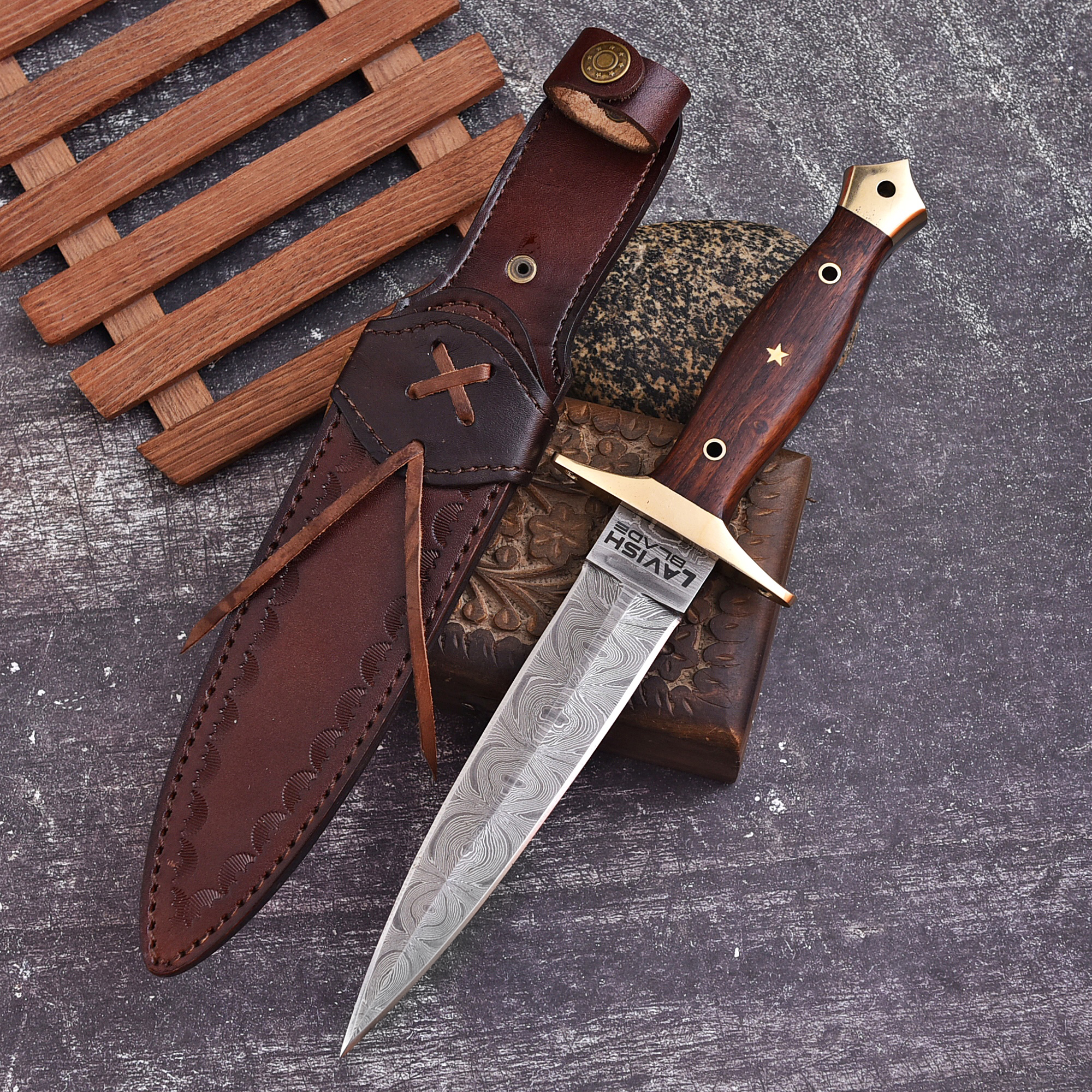 BLADE MATERIAL: Damascus Steel with double edge and deep fuller